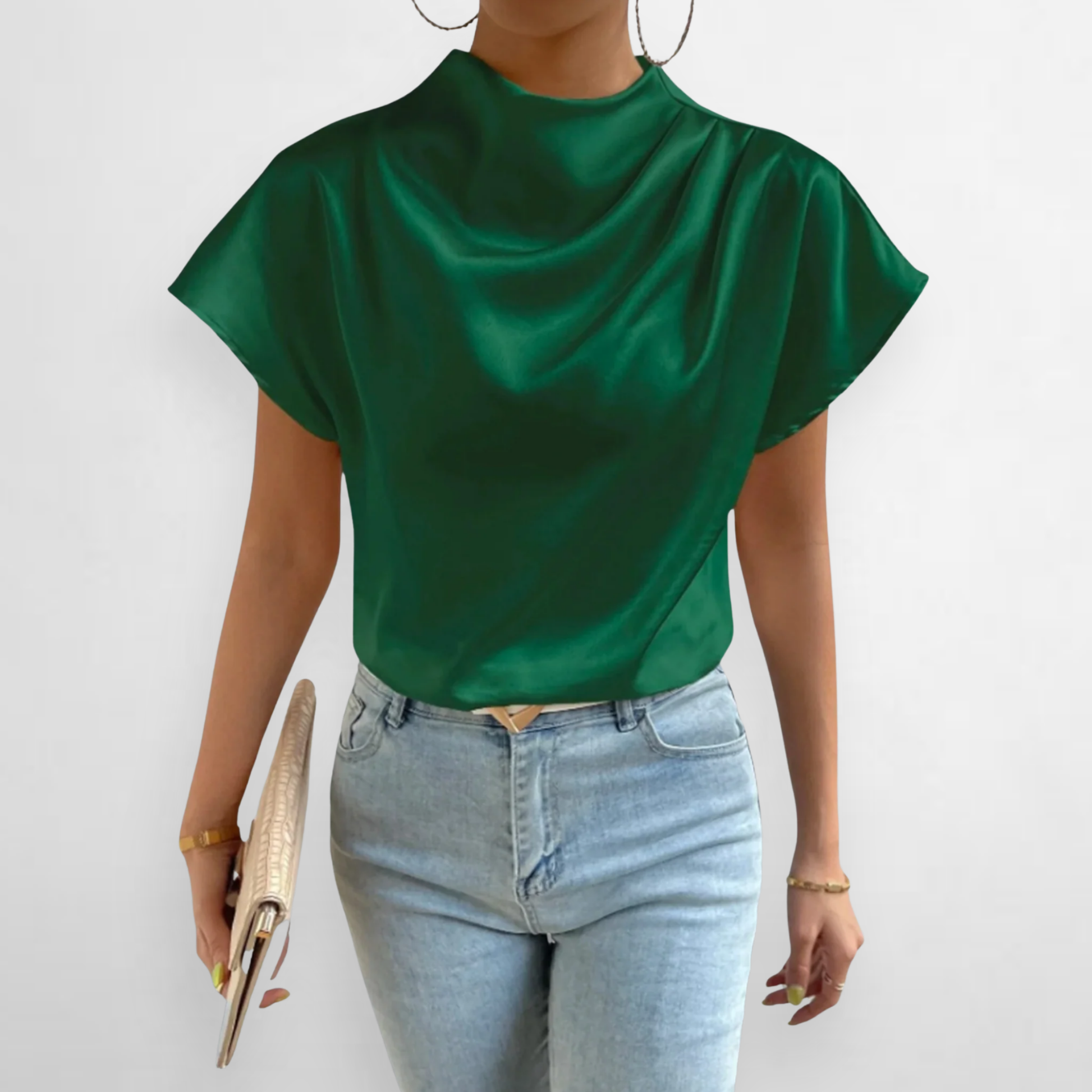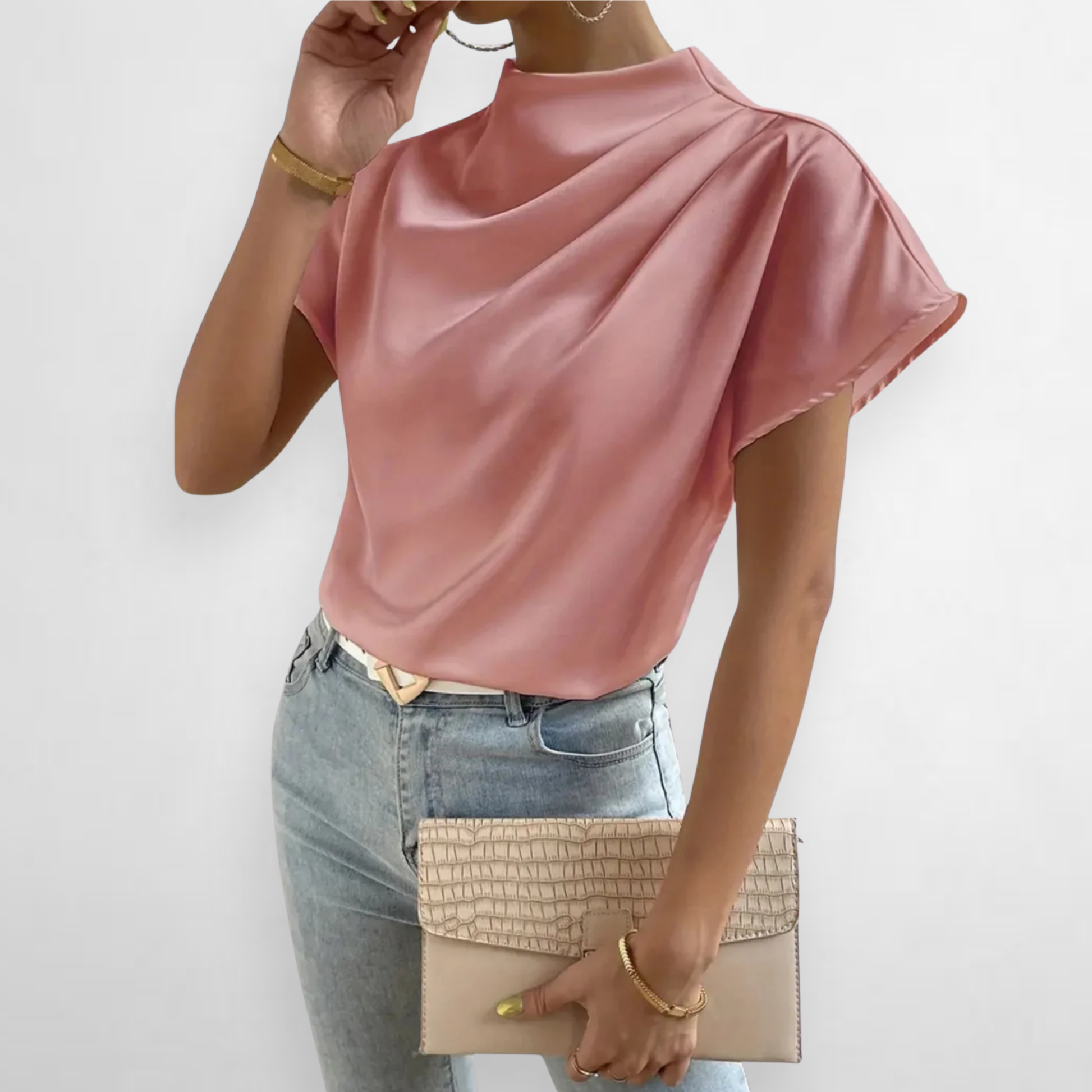 Design: Round neck loose top with subtle button detailing and a relaxed silhouette for a refined style.