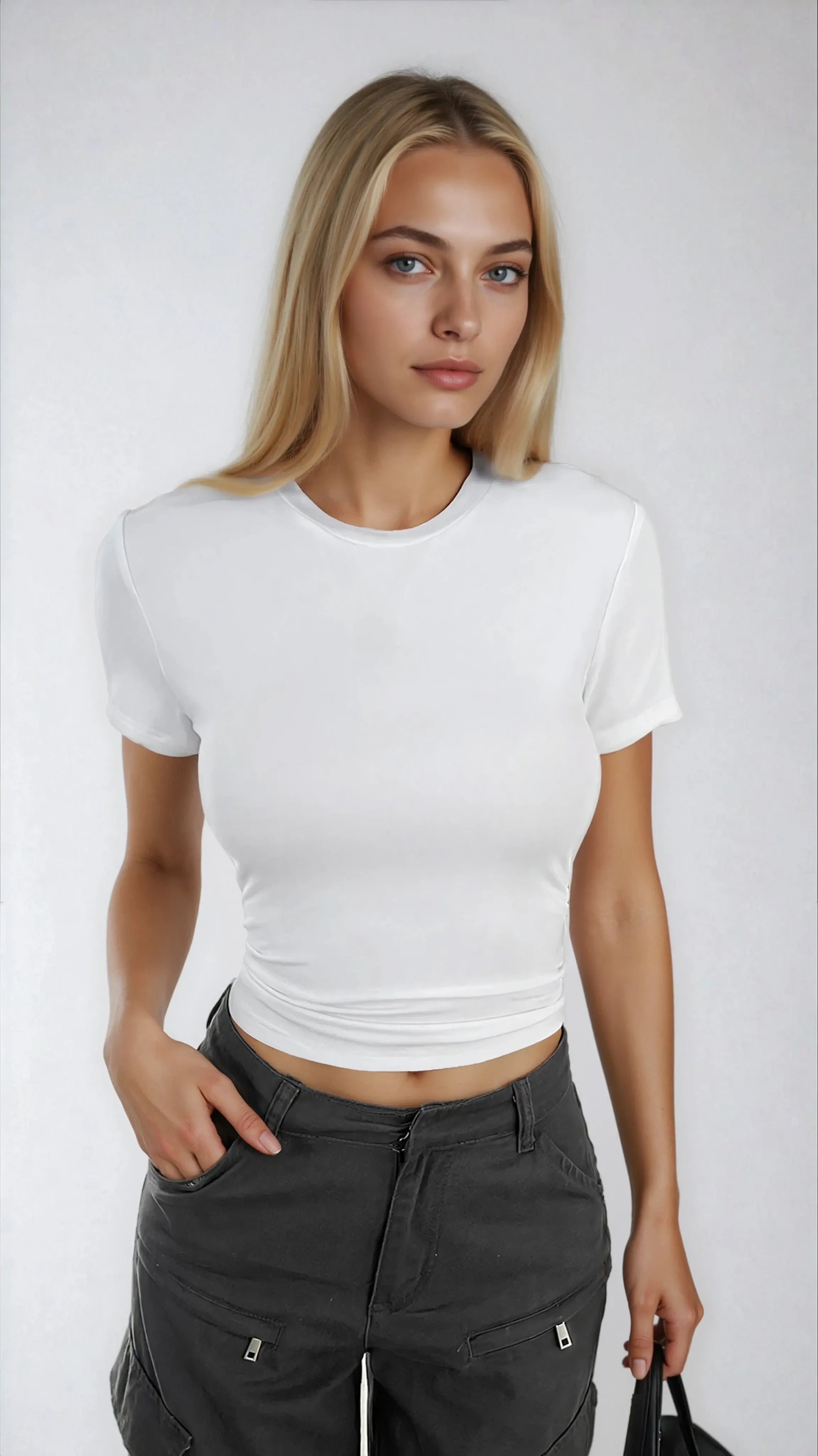 Design: A staple baby tee, designed to highlight the natural silhouette and provide a flattering, modern look.
